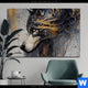 Alu-Dibond Bild | Abstrakter Wolf in Gold und Grau | Quadrat