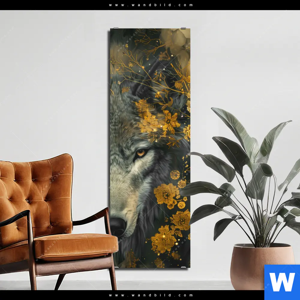 Alu-Dibond Bild | Goldener Wolfblick | Schmal