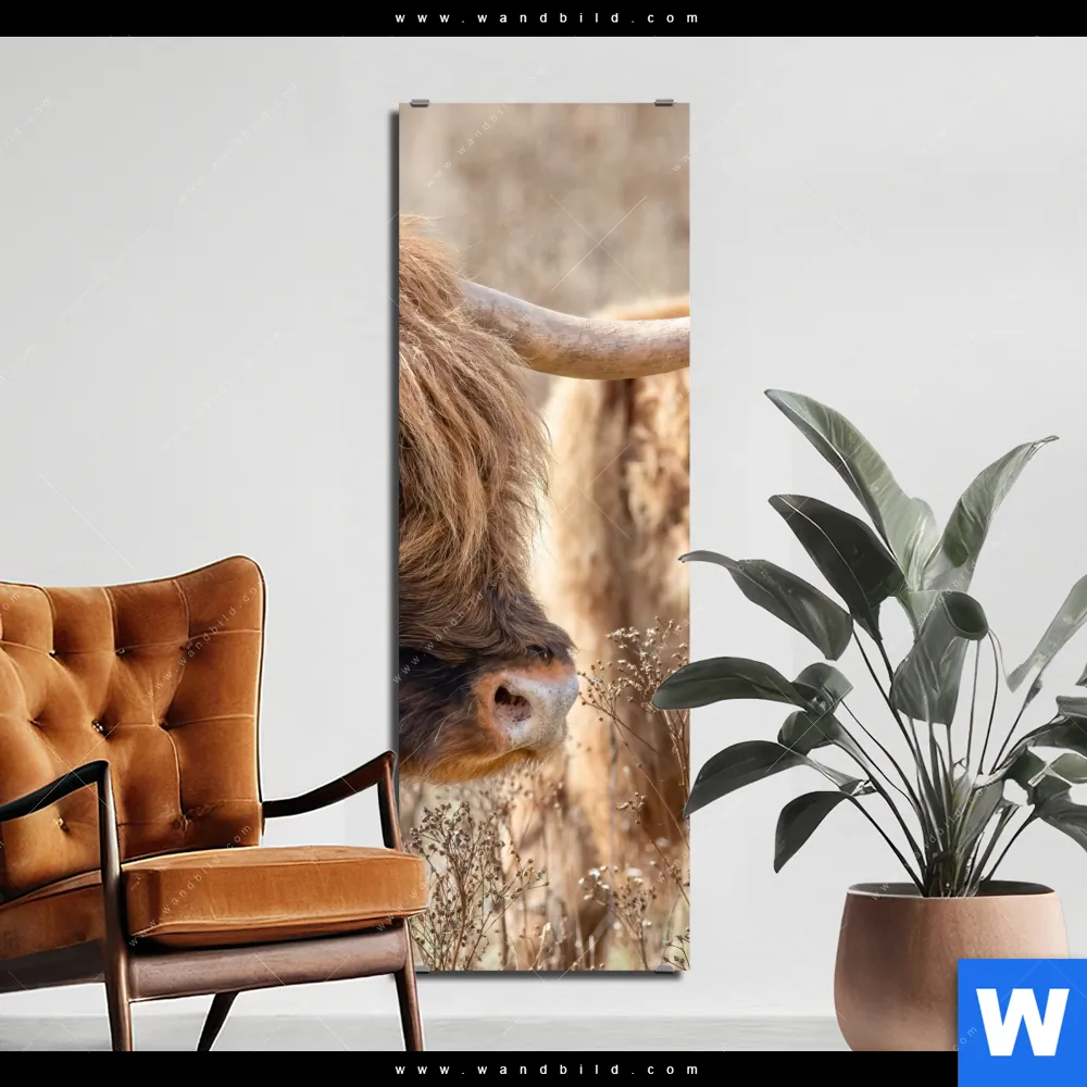 Alu-Dibond Bild | Hochlandrind auf Weide | Schmal