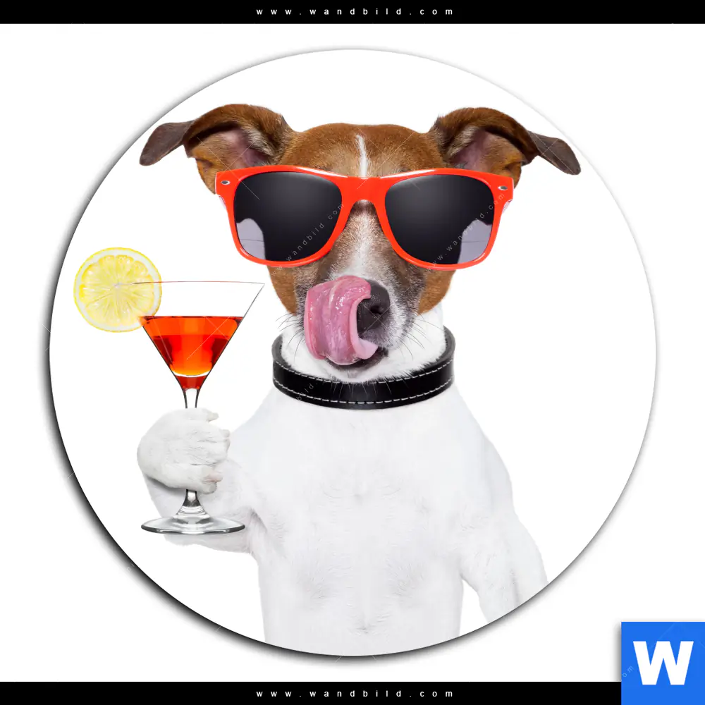 Alu-Dibond Bild | Lustiger Hund mit Drink | Rund