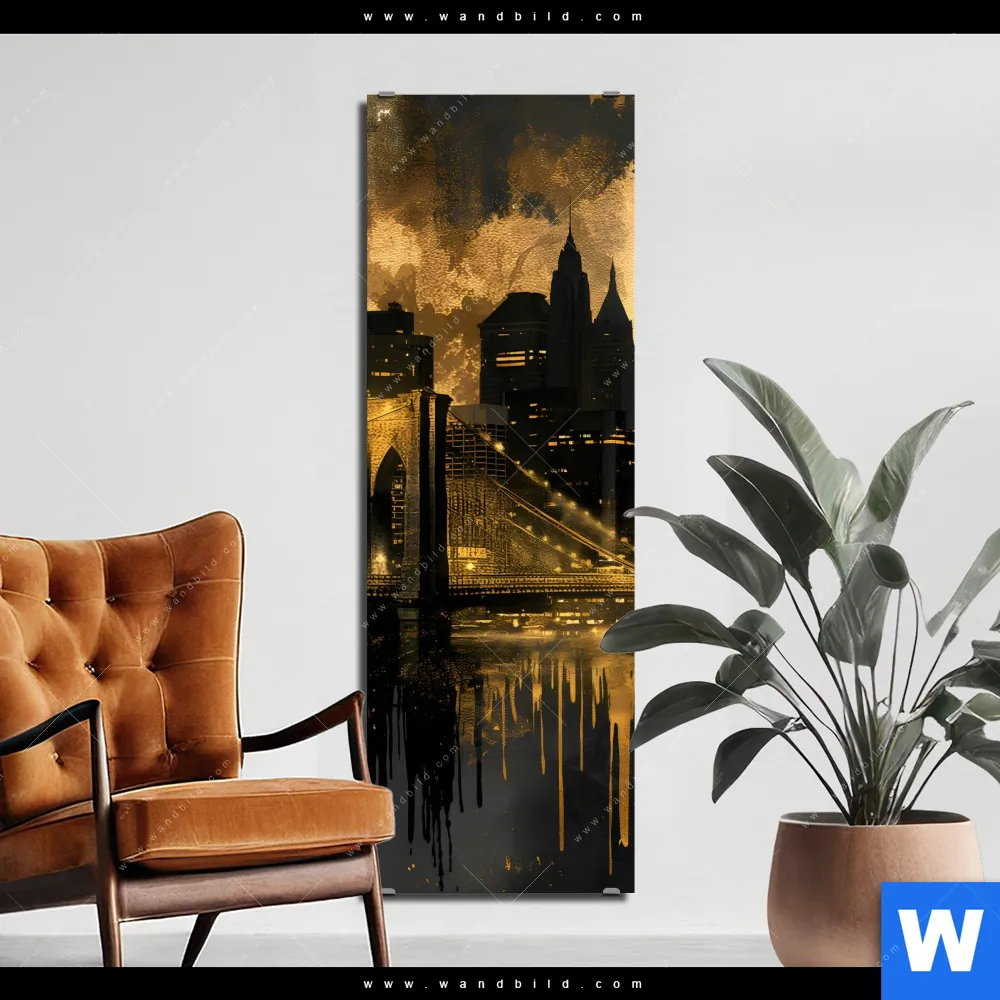 Alu-Dibond Bild | Nachtleuchten über Manhattan | Schmal