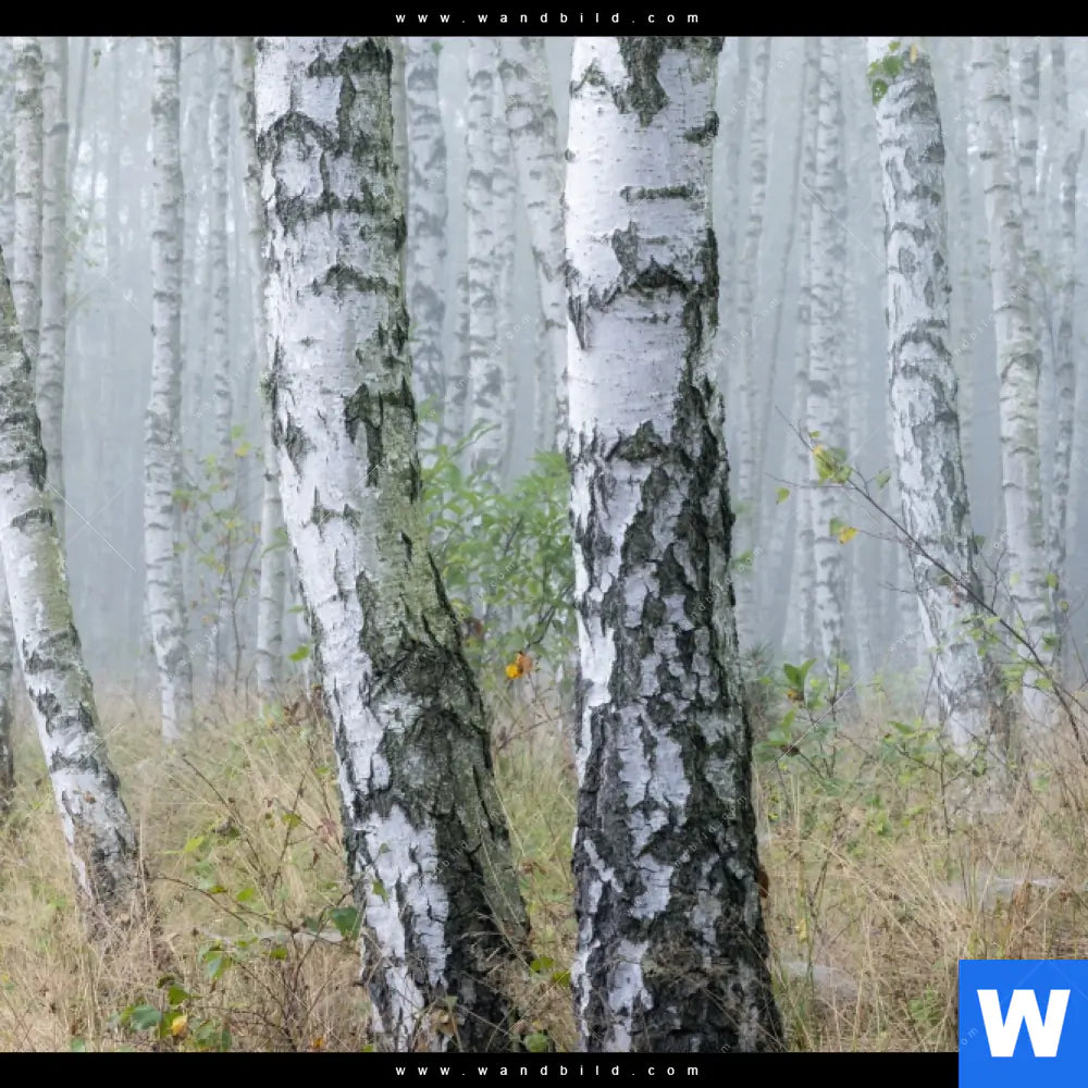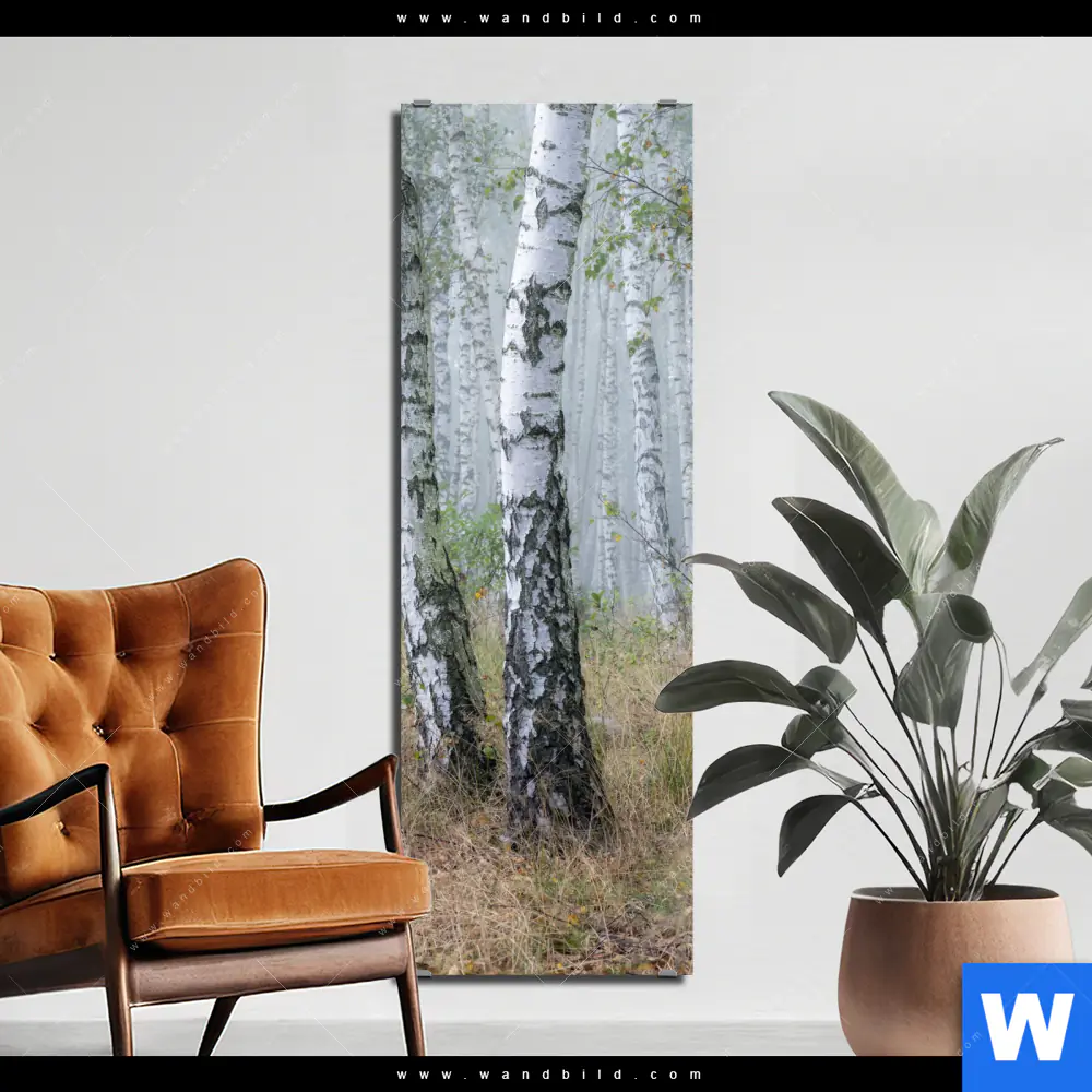 Alu-Dibond Bild | Nebliger Morgen im Birkenwald | Schmal