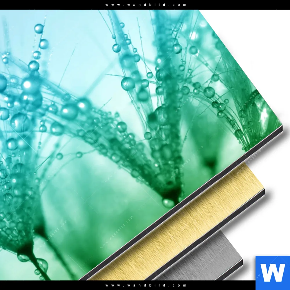 Alu-Dibond Bild | Pusteblume mit Tautropfen | Querformat