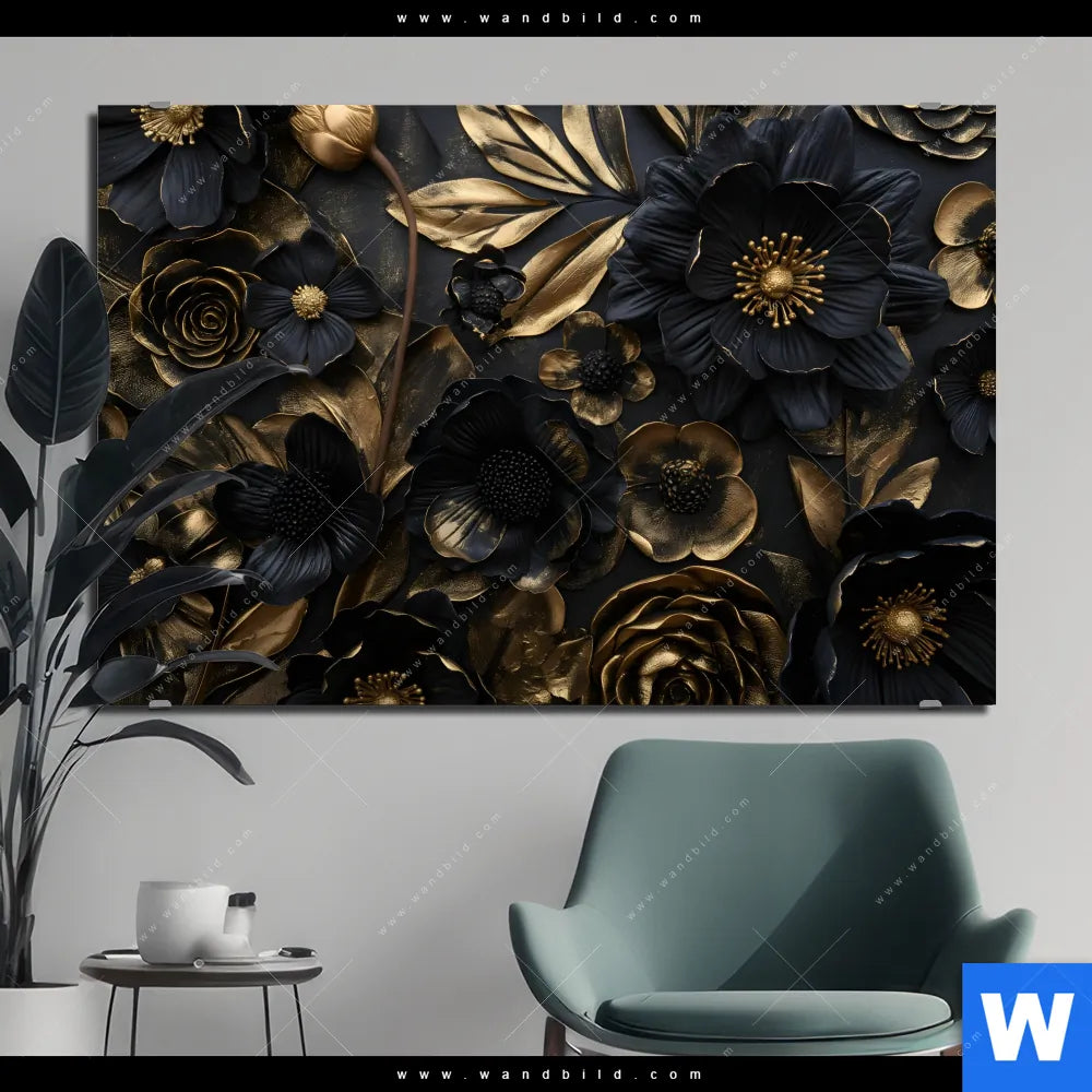 Alu-Dibond Bild | Schwarze und goldene Blüten | Querformat