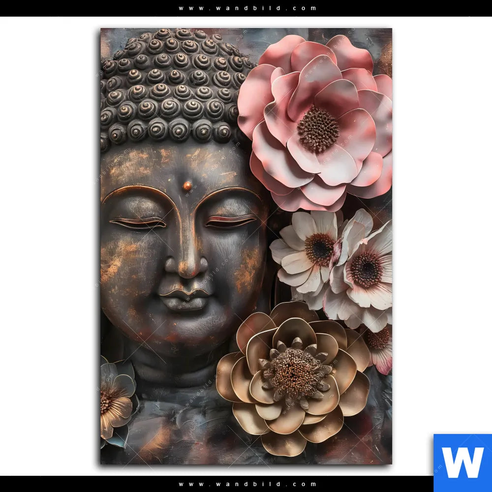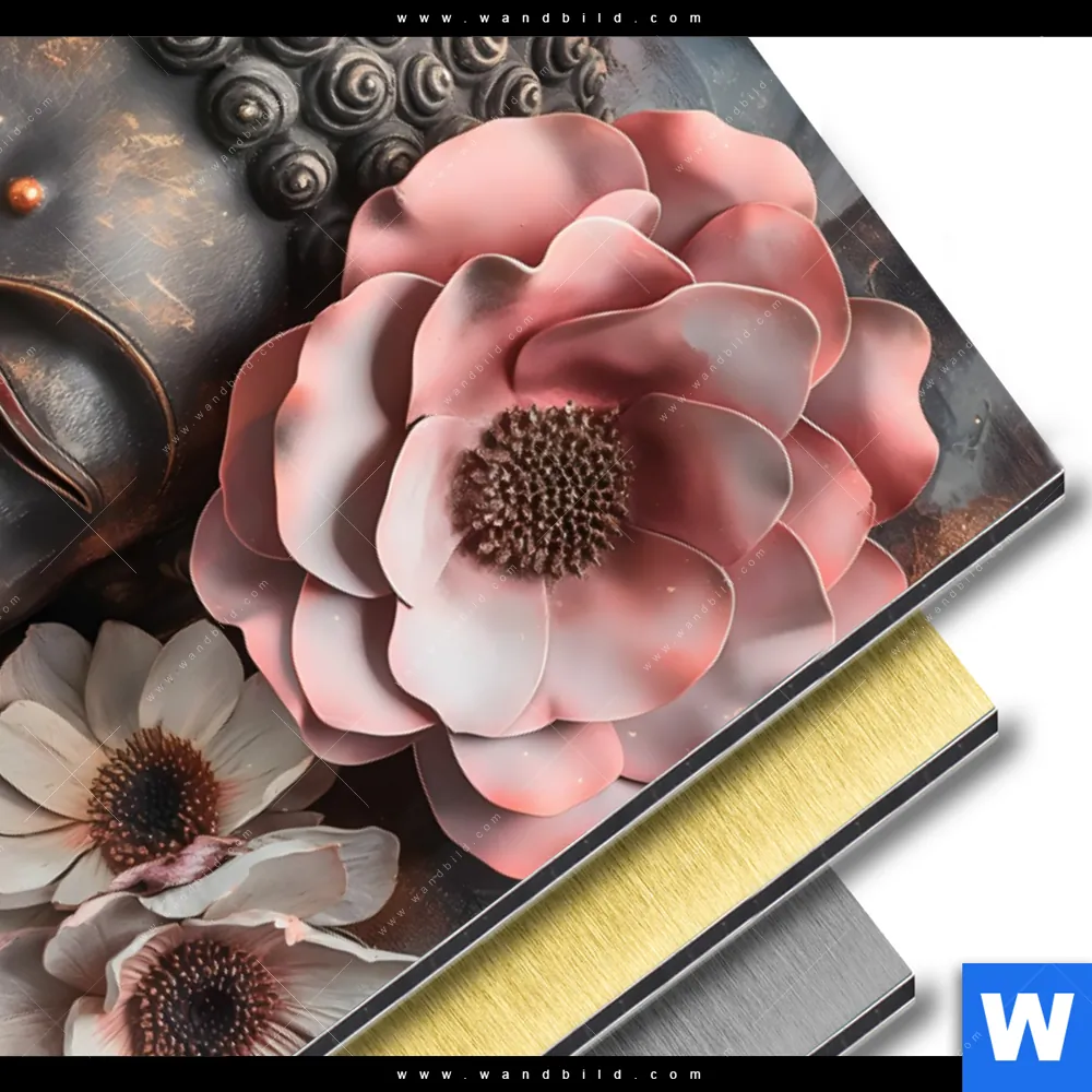 Alu-Dibond Bild | Spiritueller Buddha und Blumen | Hochformat
