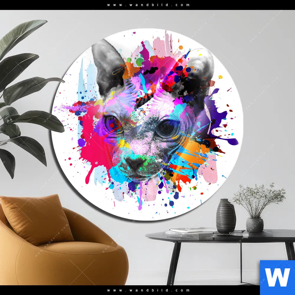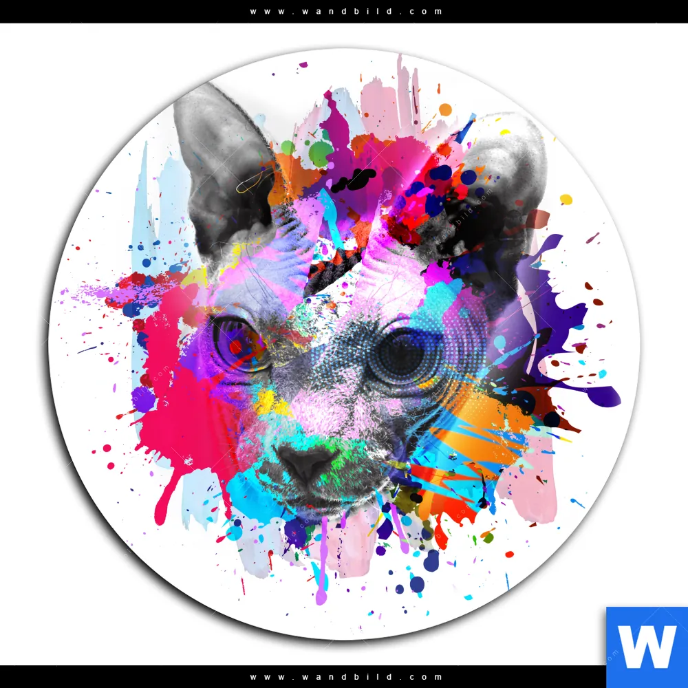 Alu-Dibond Bild | Bunte Sphynx Weiß | Rund