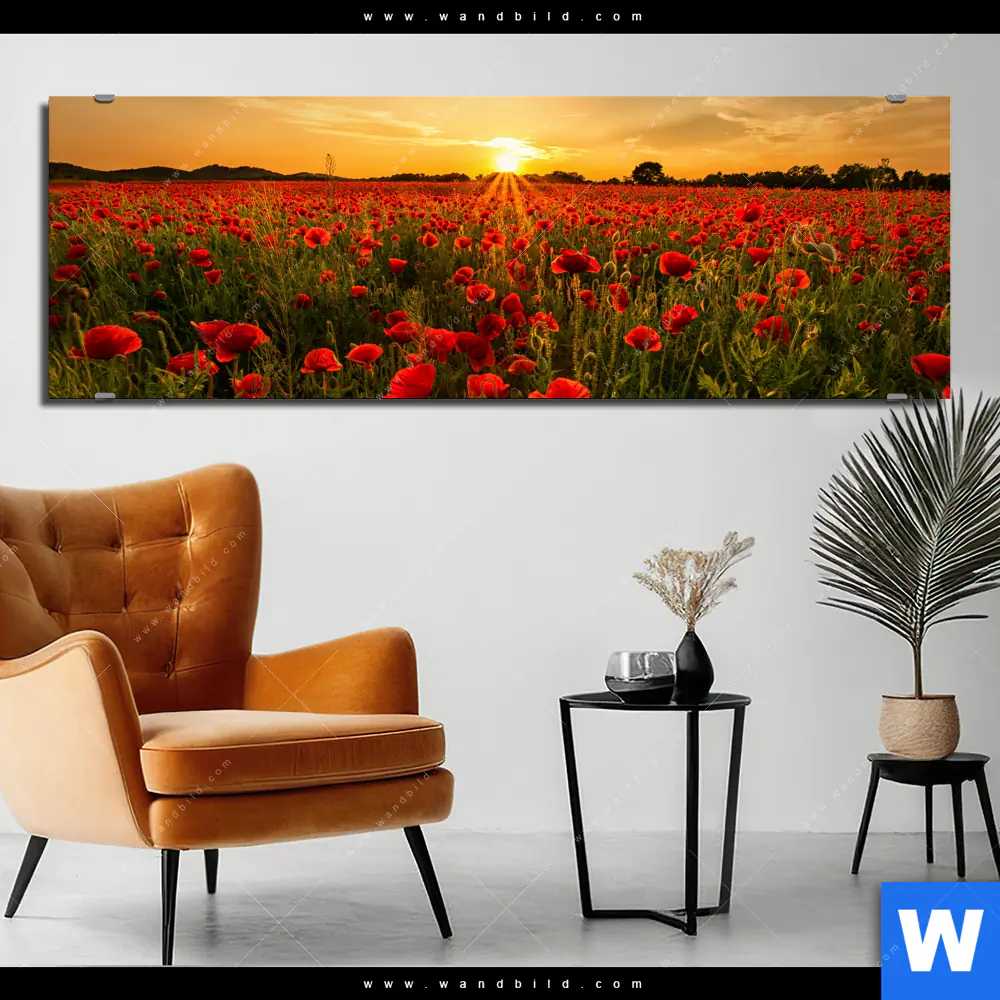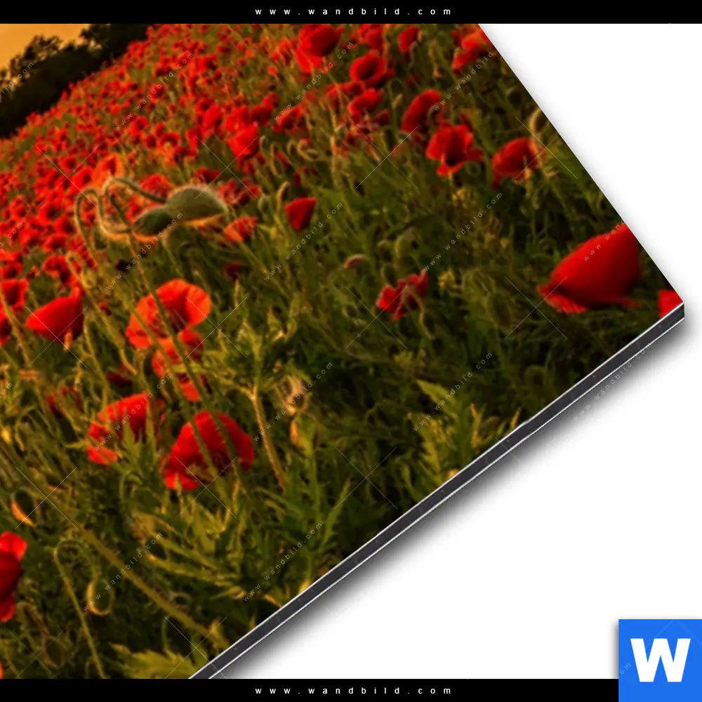 Alu-Dibond Bild | Sommerlandschaft mit rotem Mohn | Panorama