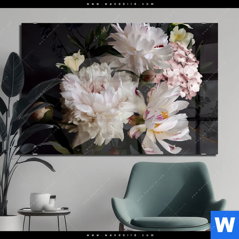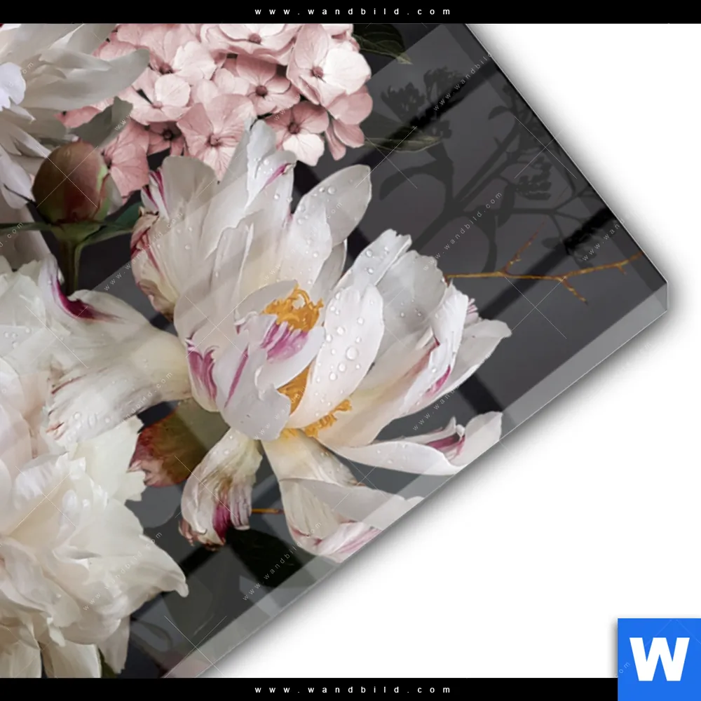 Acrylglasbild | Weiße Pfingstrosen | Querformat
