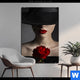 Aluminiumbild gebürstet | Frau mit Hut & Rose | Quadrat