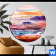 Aluminiumbild gebürstet | Gemälde mit Boot im Sonnenuntergang | Querformat