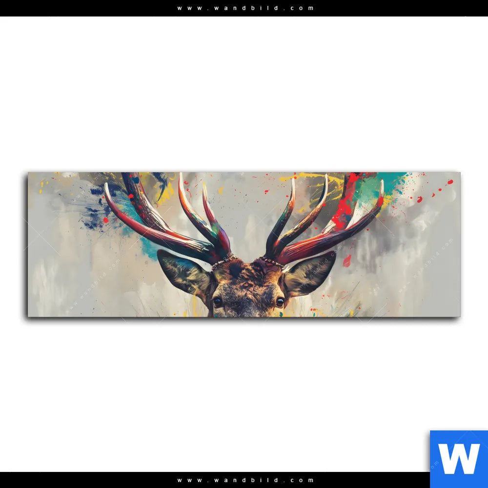 Aluminiumbild gebürstet | Kreativer Hirsch mit Farbspritzern | Panorama