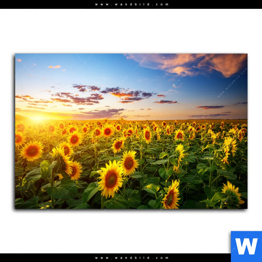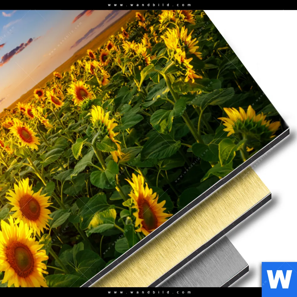 Aluminiumbild gebürstet | Leuchtend gelbe Sonnenblumen am Abend | Querformat