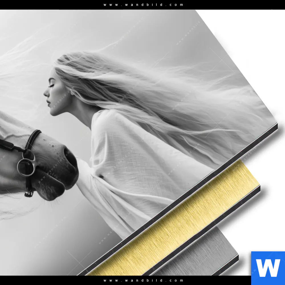 Aluminiumbild gebürstet | Pferd - Wildnis Liebe | Querformat