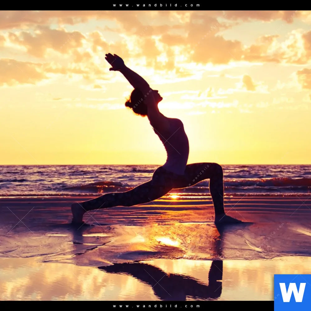 Aluminiumbild gebürstet | Yoga am lila Strand | Querformat