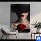 Leinwandbild | Frau mit Hut & Rose | Quadrat
