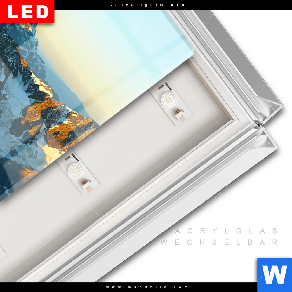 LED-Glasbild mit austauschbarem Acrylglas-Druck (Wechselbild)