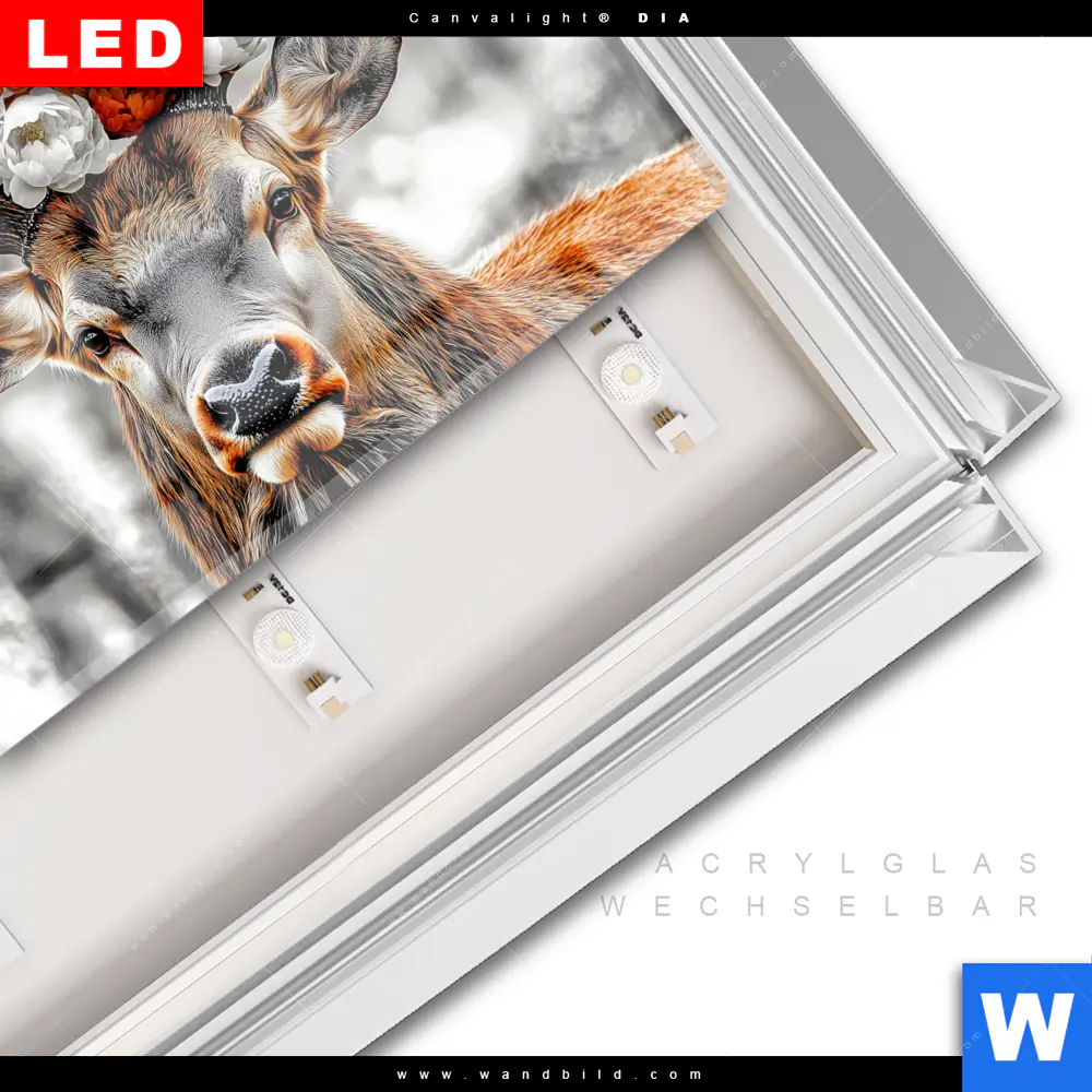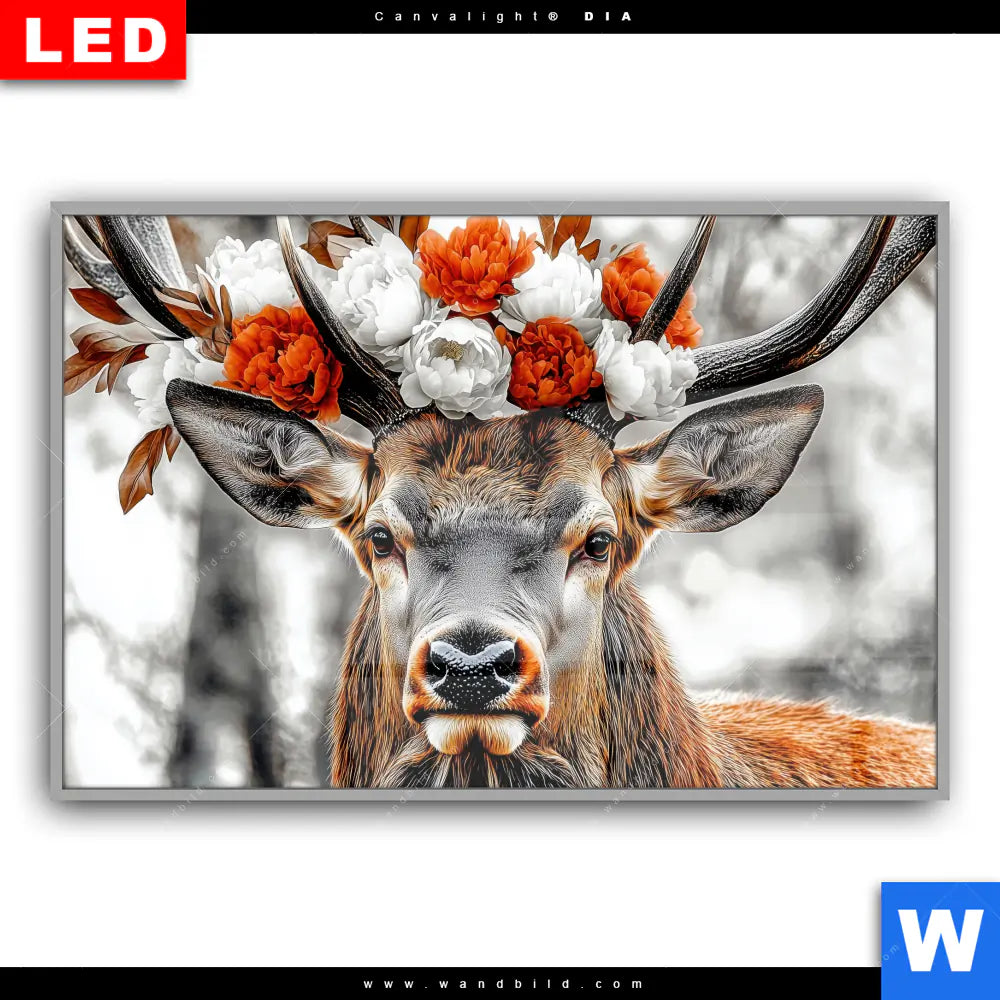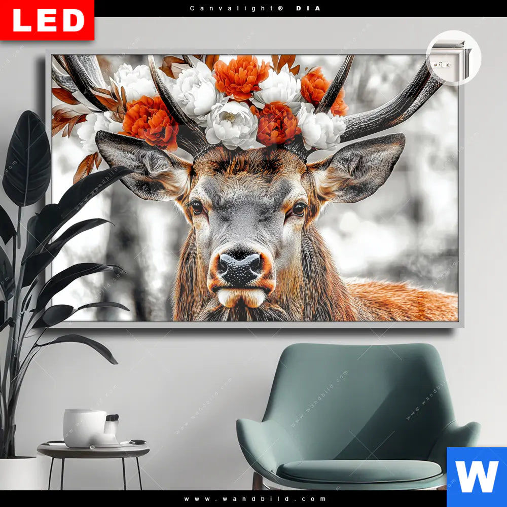 Canvalight® DIA Leuchtbild | Hirsch mit Blumenkrone | Querformat