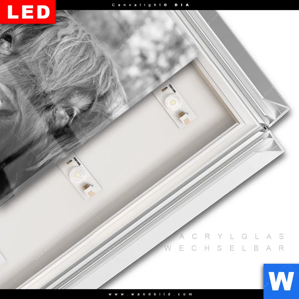 LED-Glasbild mit austauschbarem Acrylglas-Druck (Wechselbild)