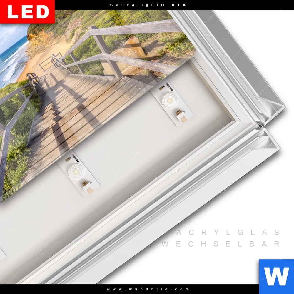 LED-Glasbild mit austauschbarem Acrylglas-Druck (Wechselbild)