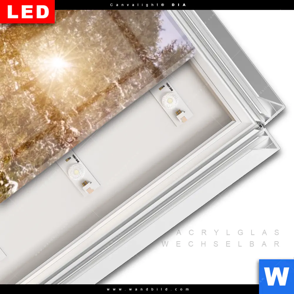 LED-Glasbild mit austauschbarem Acrylglas-Druck (Wechselbild)