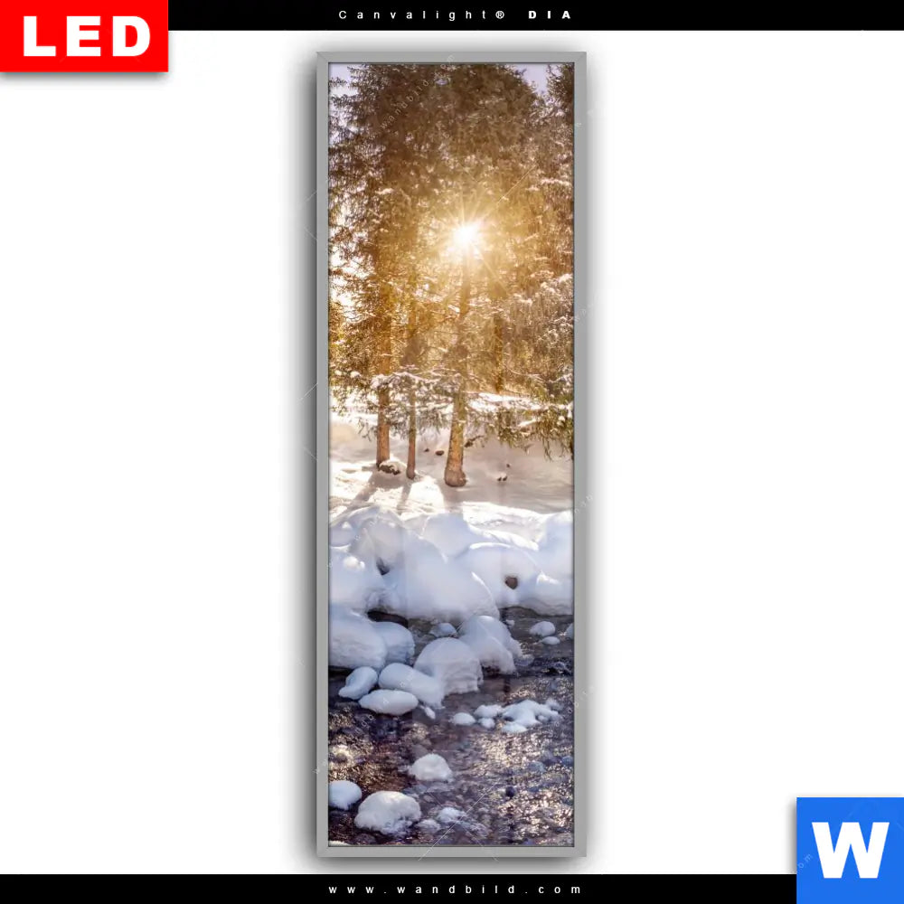 Canvalight® DIA Leuchtbild | Schneebedeckte Landschaft am Fluss | Schmal