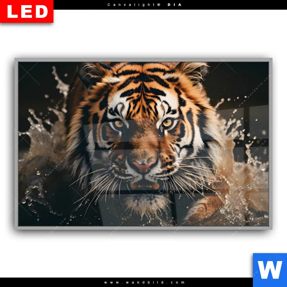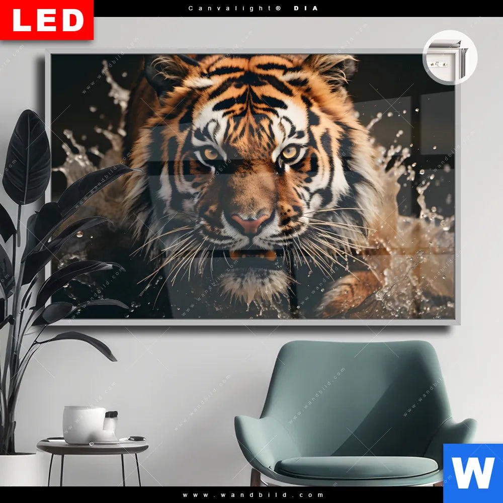 Canvalight® DIA Leuchtbild | Tiger im Wasser | Querformat