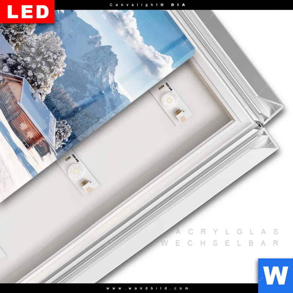 LED-Glasbild mit austauschbarem Acrylglas-Druck (Wechselbild)