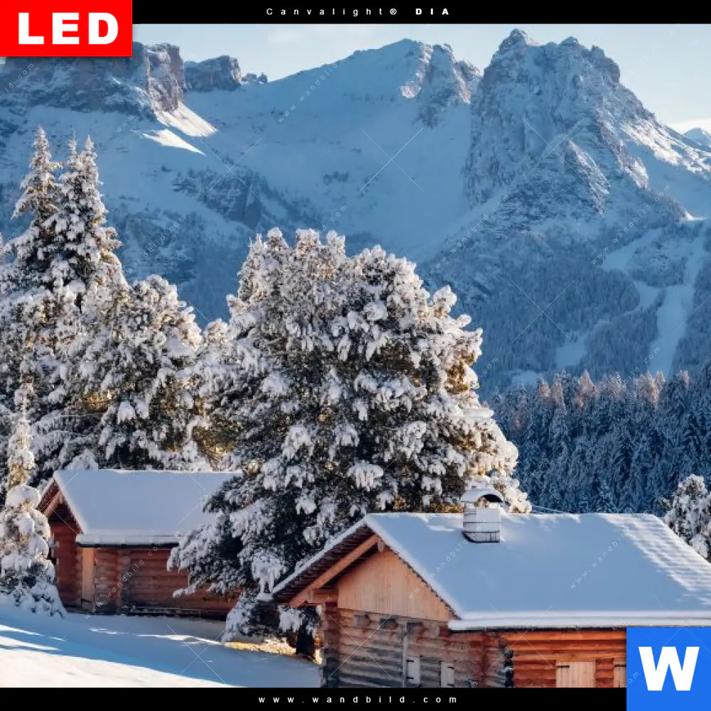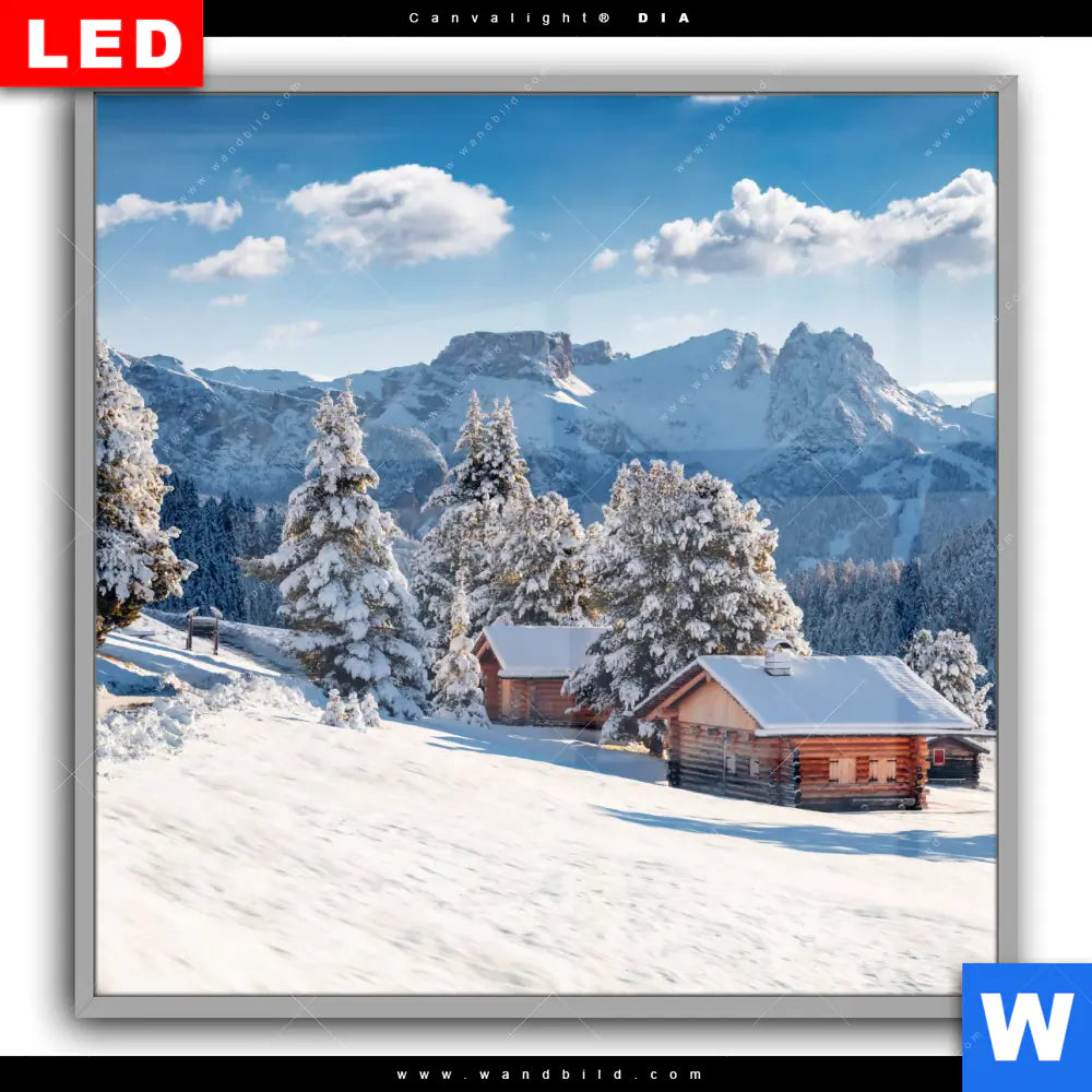 Canvalight® DIA Leuchtbild | Winteridylle in den Bergen | Quadrat