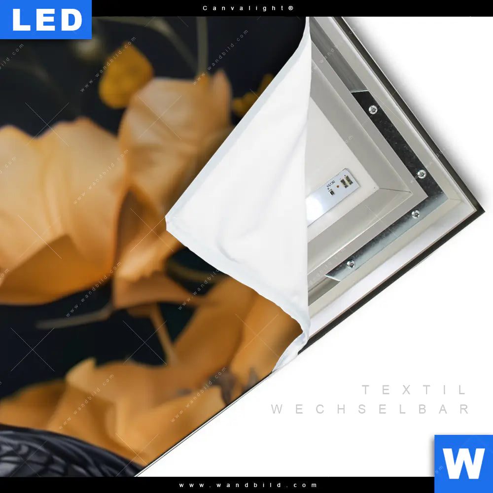 LED-Textilrahmen-Bild mit austauschbarem Tierwelt, Blumen - Botanik Textil-Druck (Wechselbild)