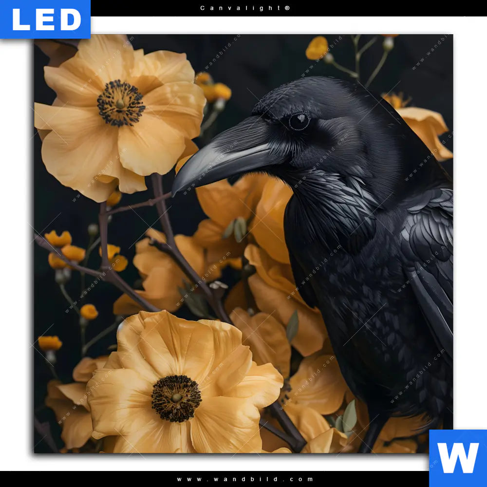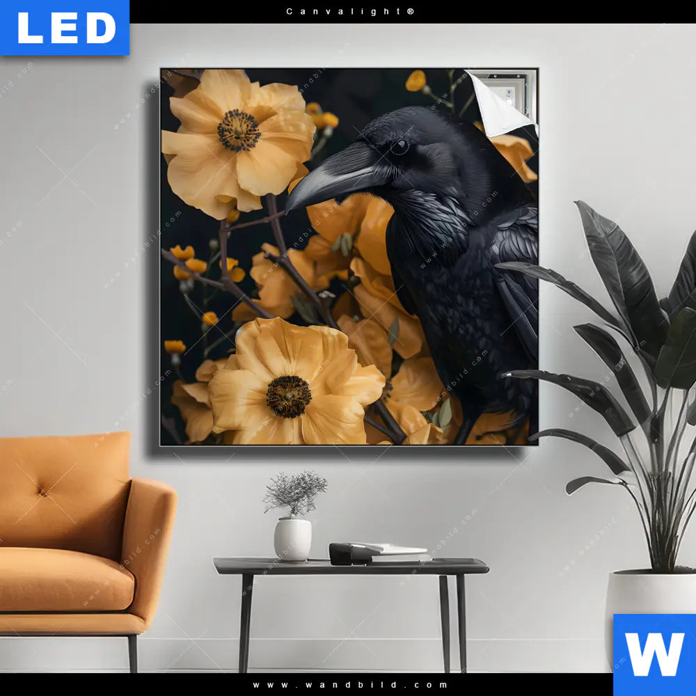 Canvalight® Leuchtbild | Naturbild - Rabe & Blüten | Quadrat