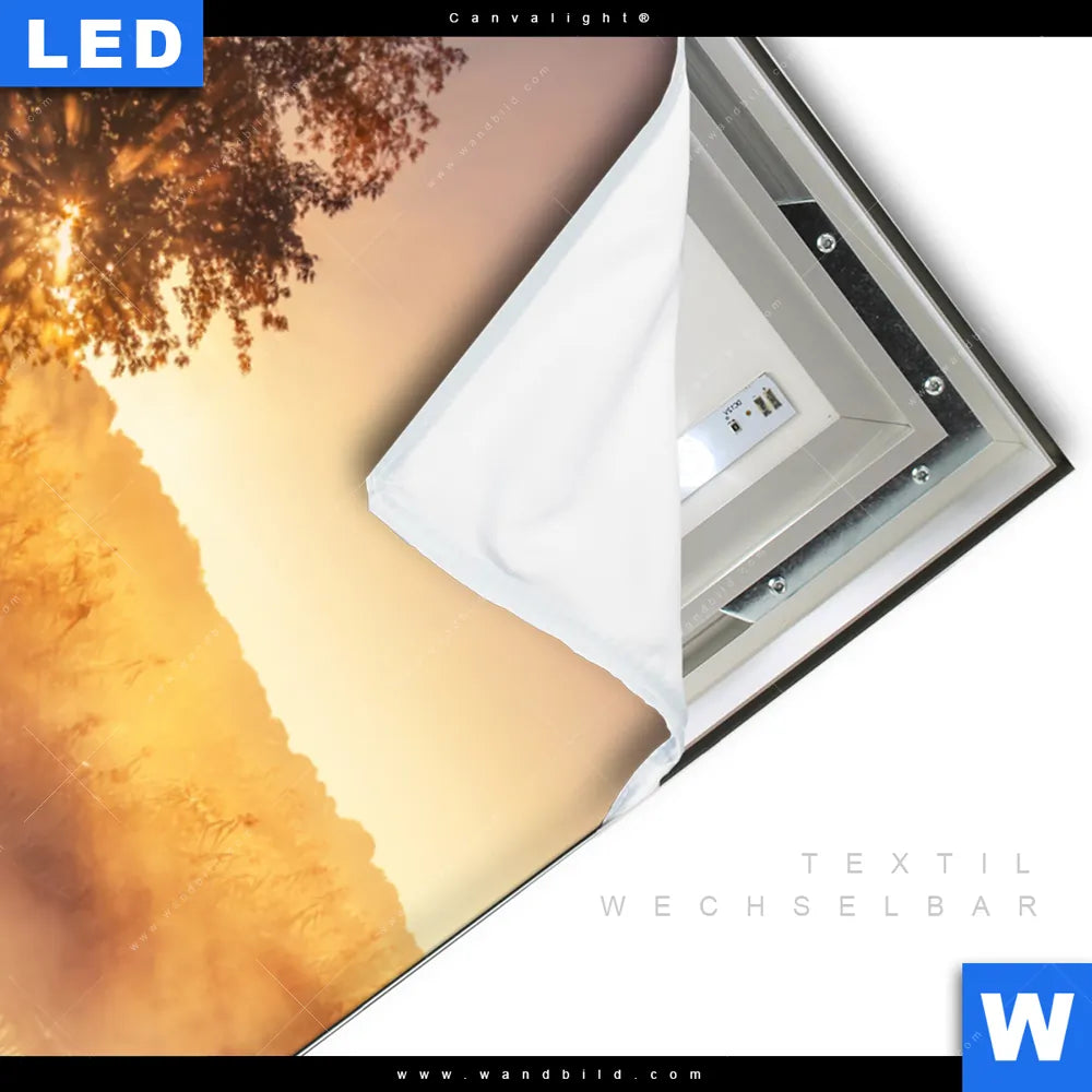 LED-Textilrahmen-Bild mit austauschbarem Landschaften Textil-Druck (Wechselbild)