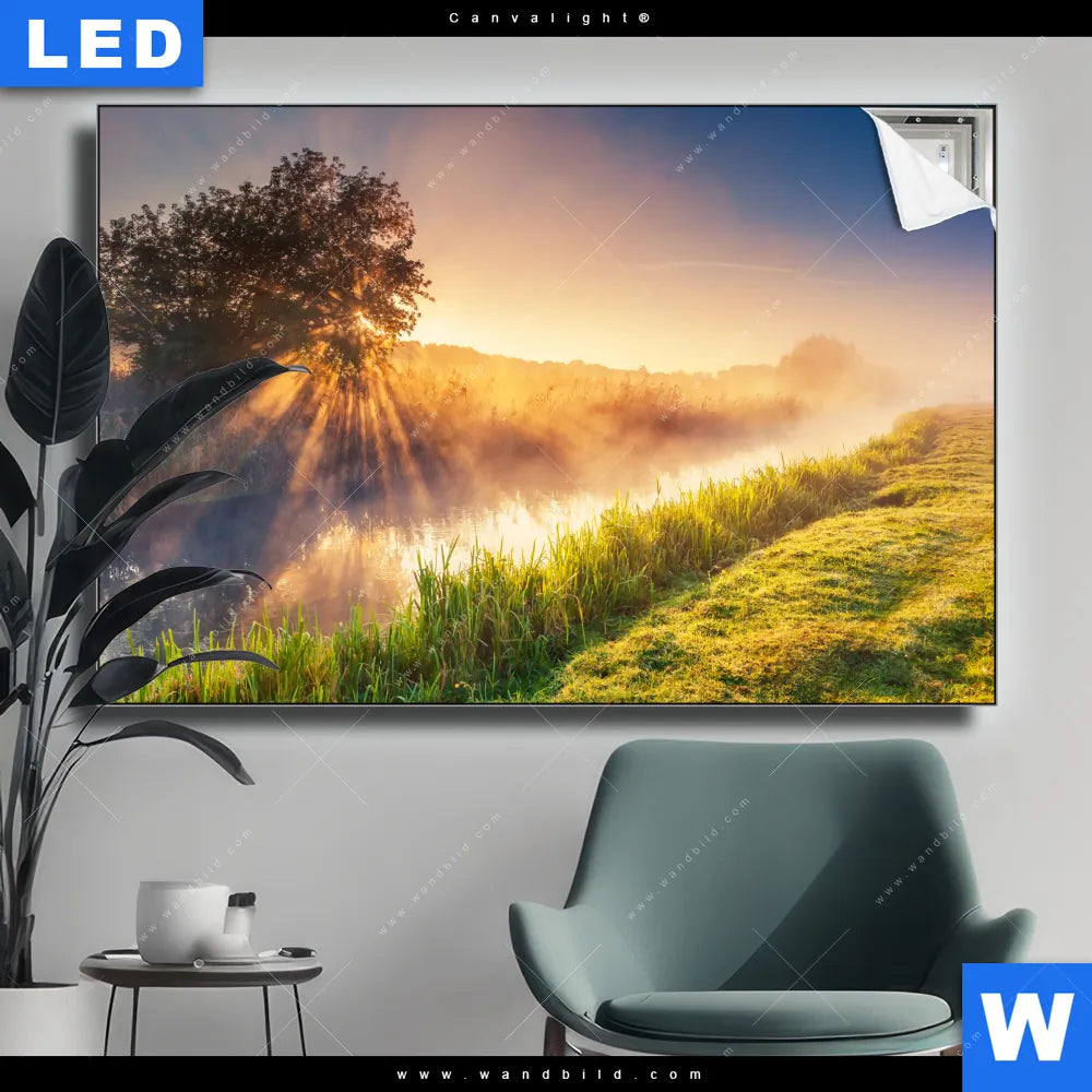 Canvalight® TEX Leuchtbild | Nebel am Fluss | Querformat