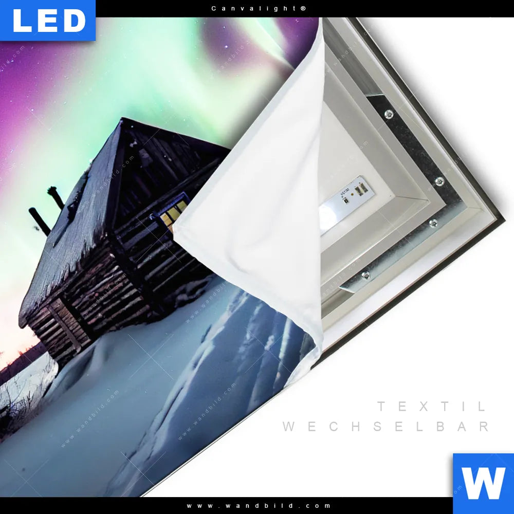 LED-Textilrahmen-Bild mit austauschbarem Landschaften Textil-Druck (Wechselbild)