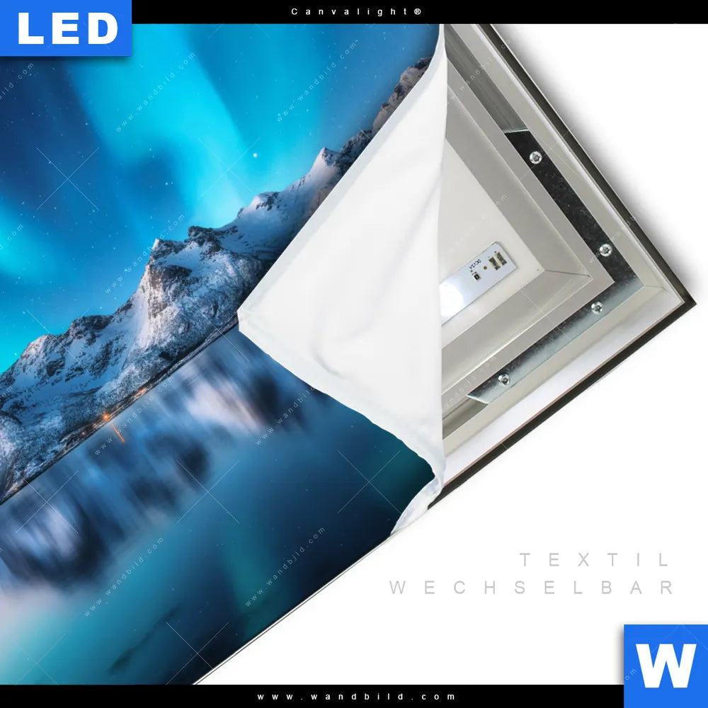 LED-Textilrahmen-Bild mit austauschbarem Landschaften Textil-Druck (Wechselbild)