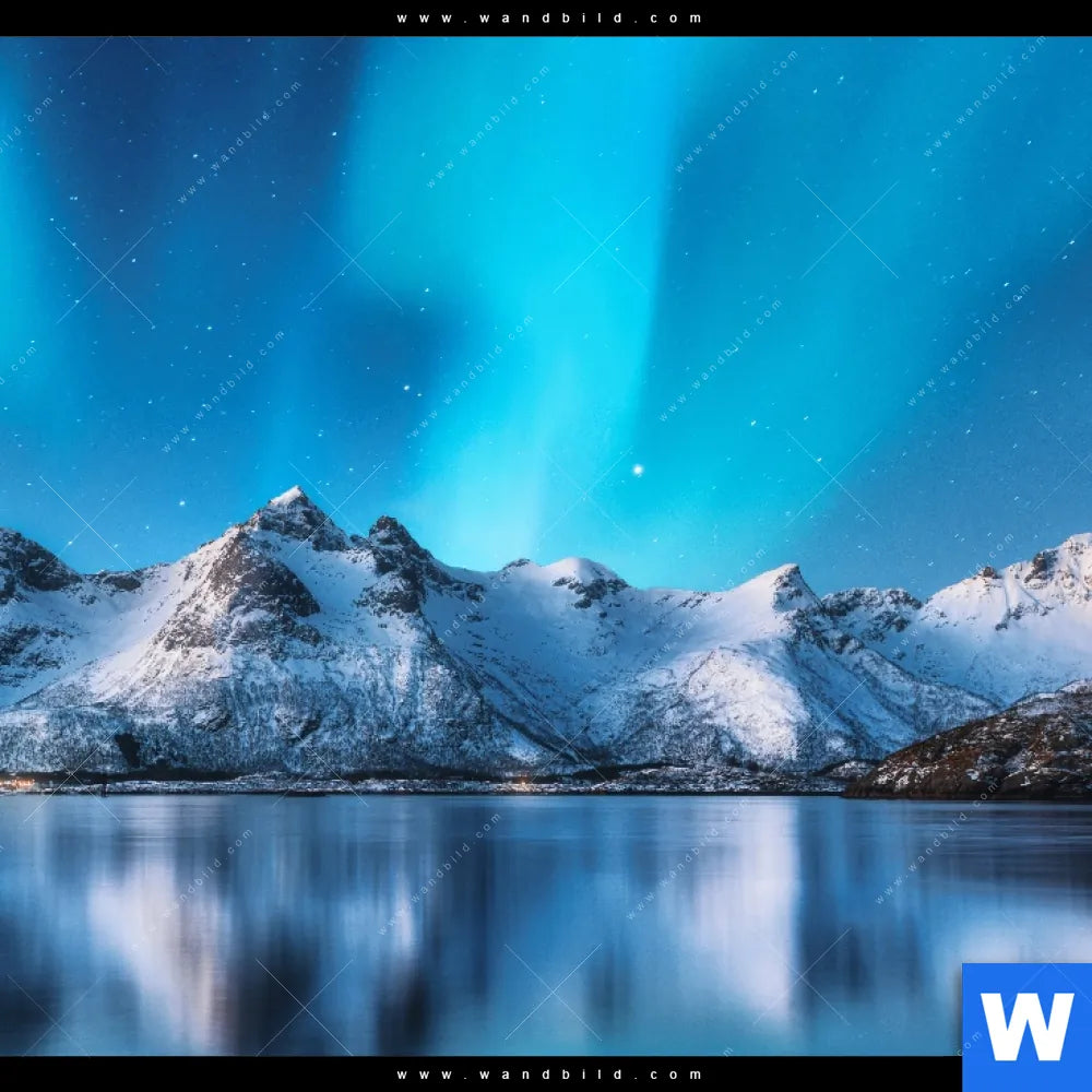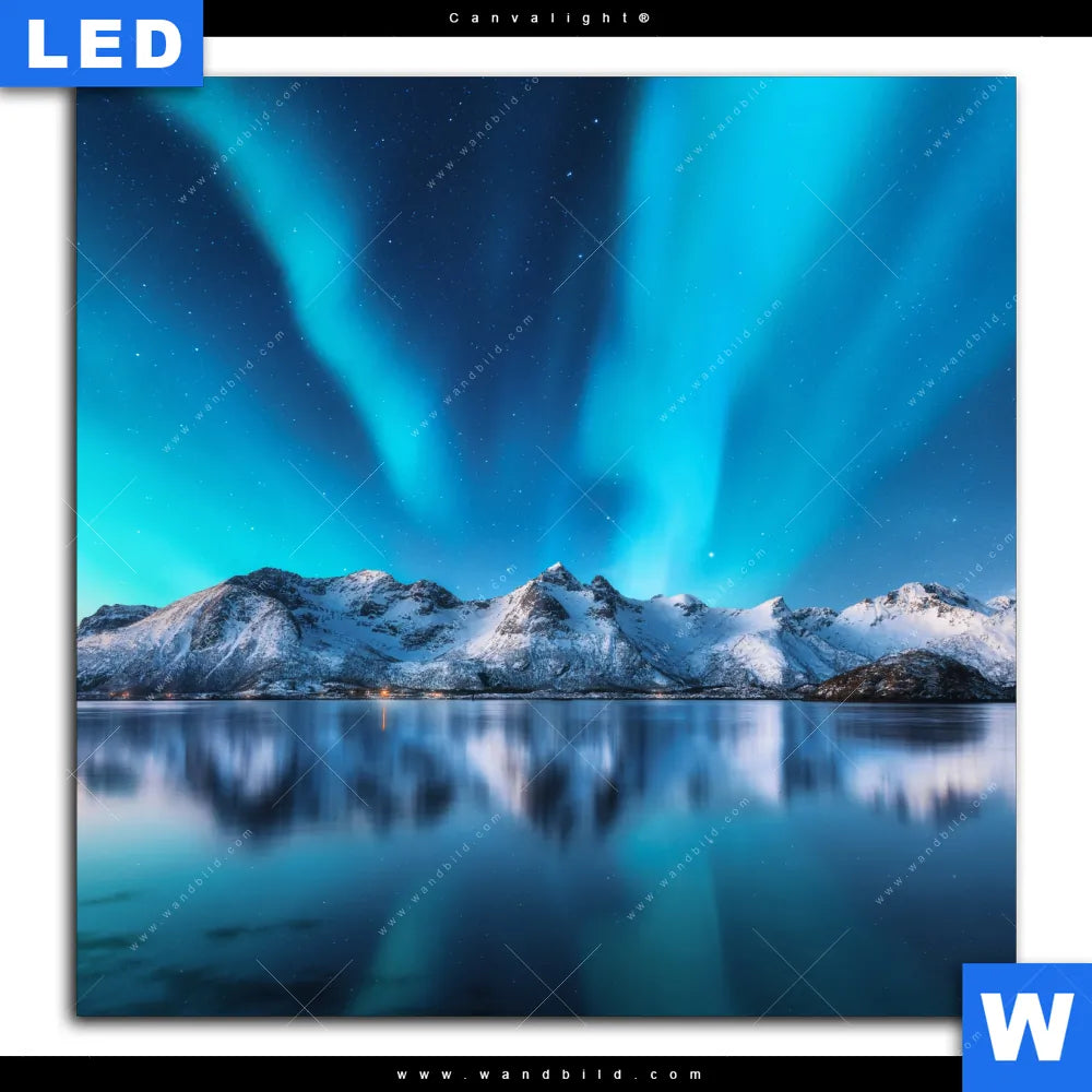 Canvalight® Leuchtbild | Nordlichter und schneebedeckte Berge | Quadrat