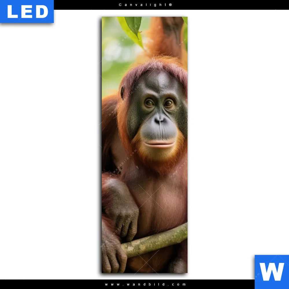 Canvalight® Leuchtbild | Orang Utan Familie im Regenwald | Schmal