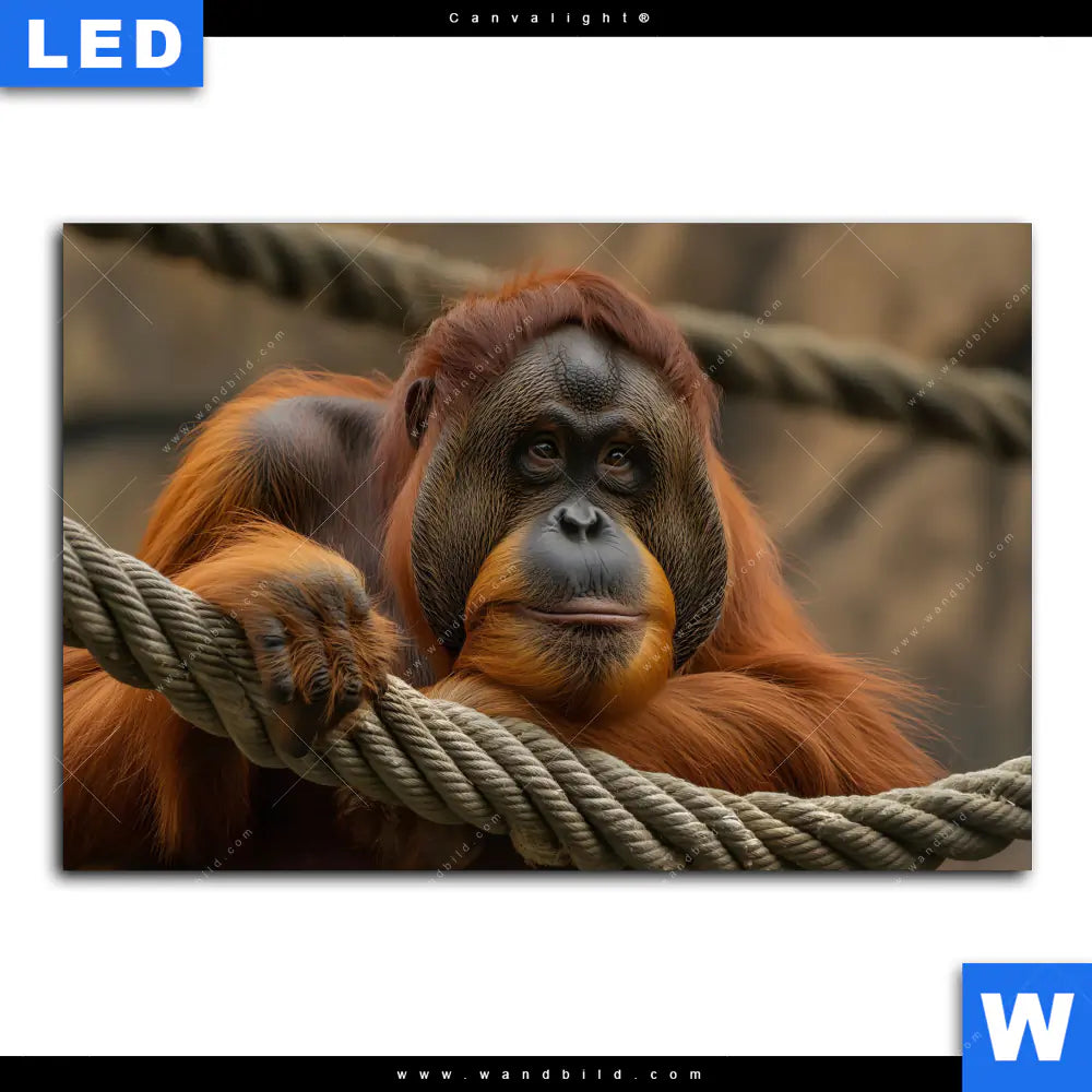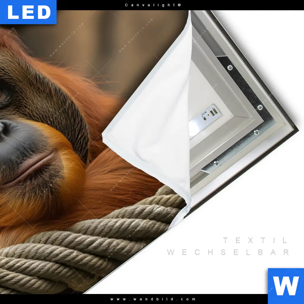 Canvalight® TEX Leuchtbild | Orang-Utan mit sanftem Blick | Querformat