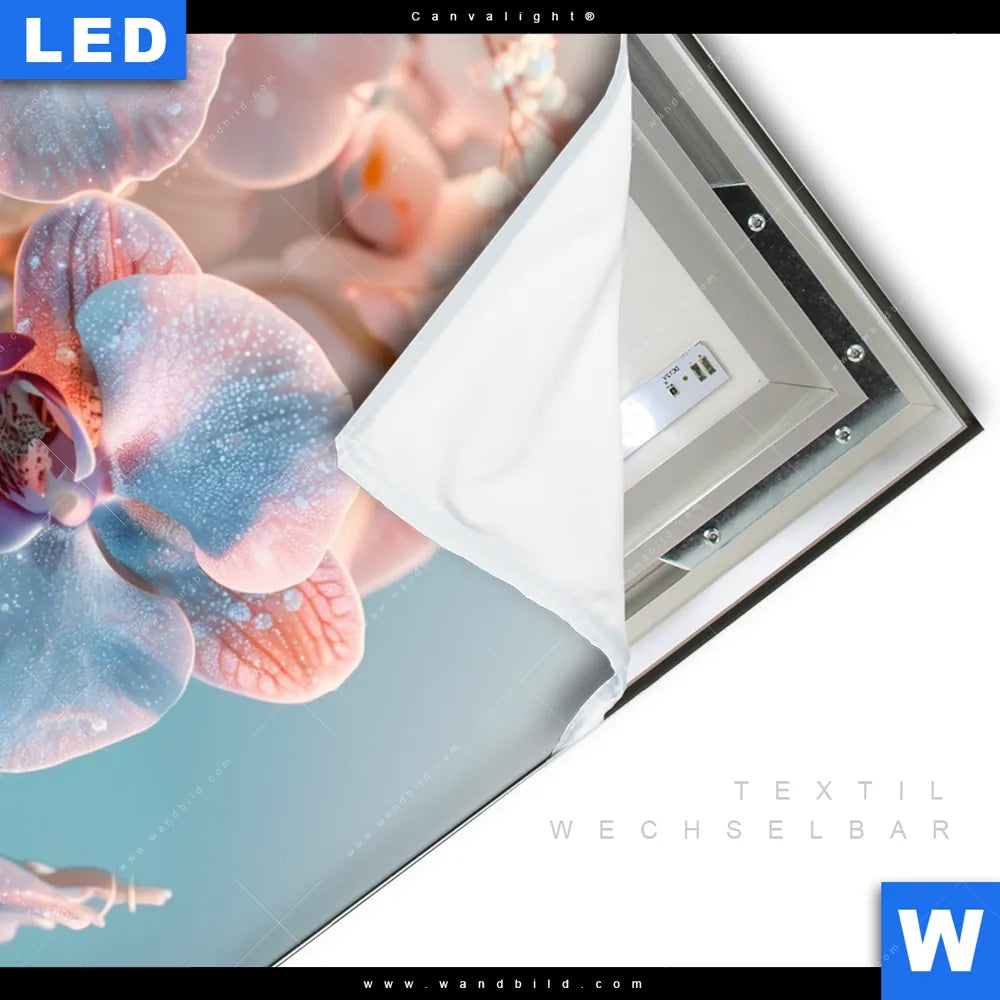 Canvalight® TEX Leuchtbild | Orchideenblüten in Pastell | Hochformat
