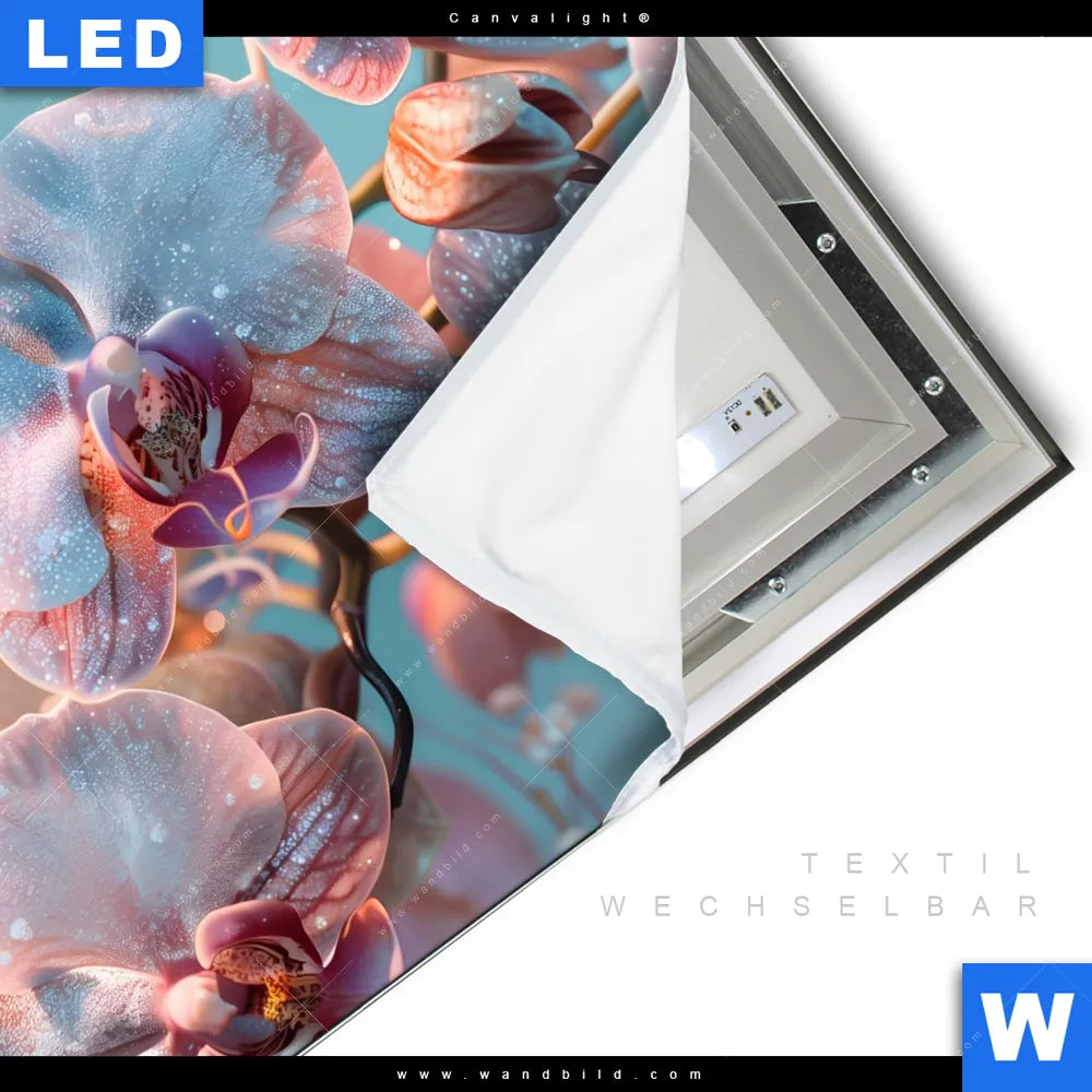 Canvalight® TEX Leuchtbild | Orchideenblüten in Pastell | Quadrat