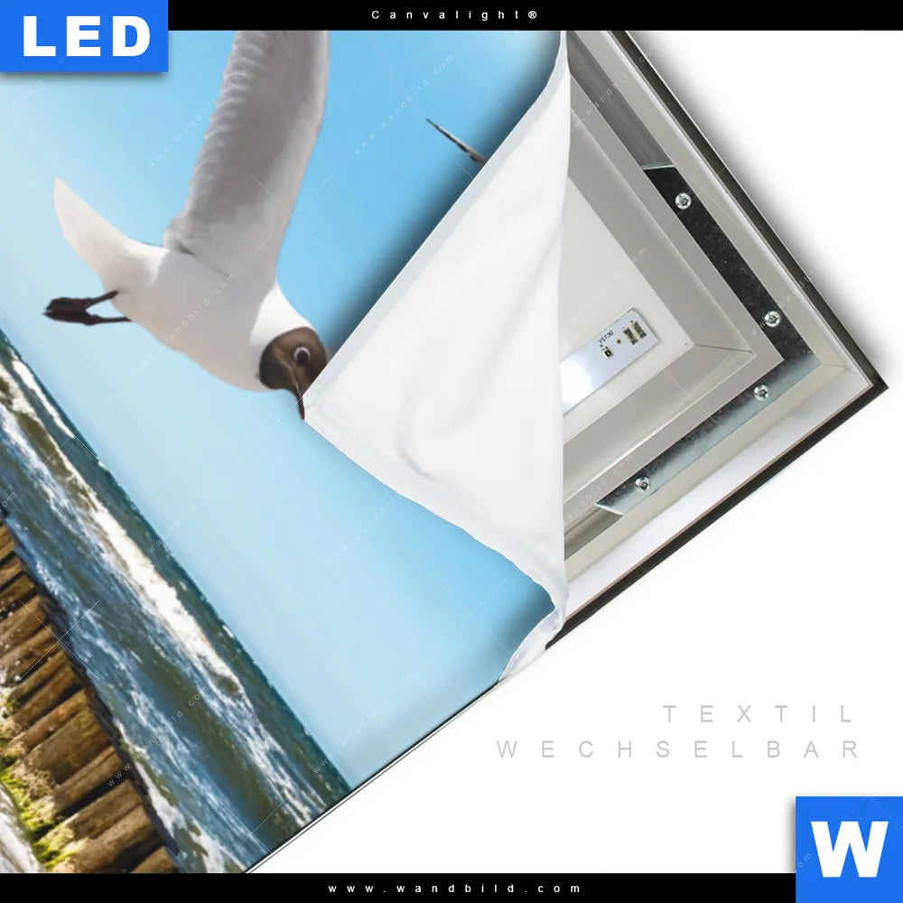 Canvalight® TEX Leuchtbild | Ostseeküste & Möwen | Hochformat