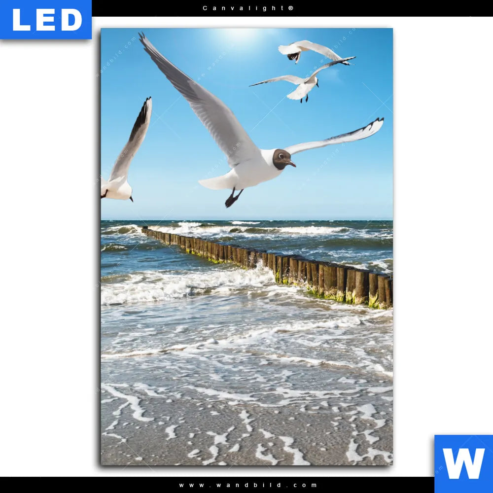 Canvalight® Leuchtbild | Ostseeküste & Möwen | Hochformat