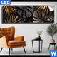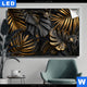Canvalight® TEX Leuchtbild | Palmenblätter Schwarz Gold | Quadrat