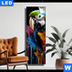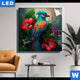 Canvalight® TEX Leuchtbild | Papagei mit bunten Farbspritzern | Hochformat