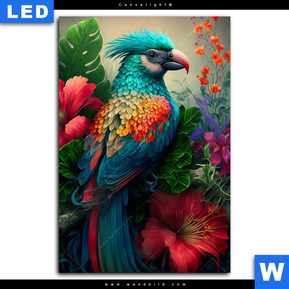 Canvalight® Leuchtbild | Papagei und tropischer Hibiskus | Hochformat
