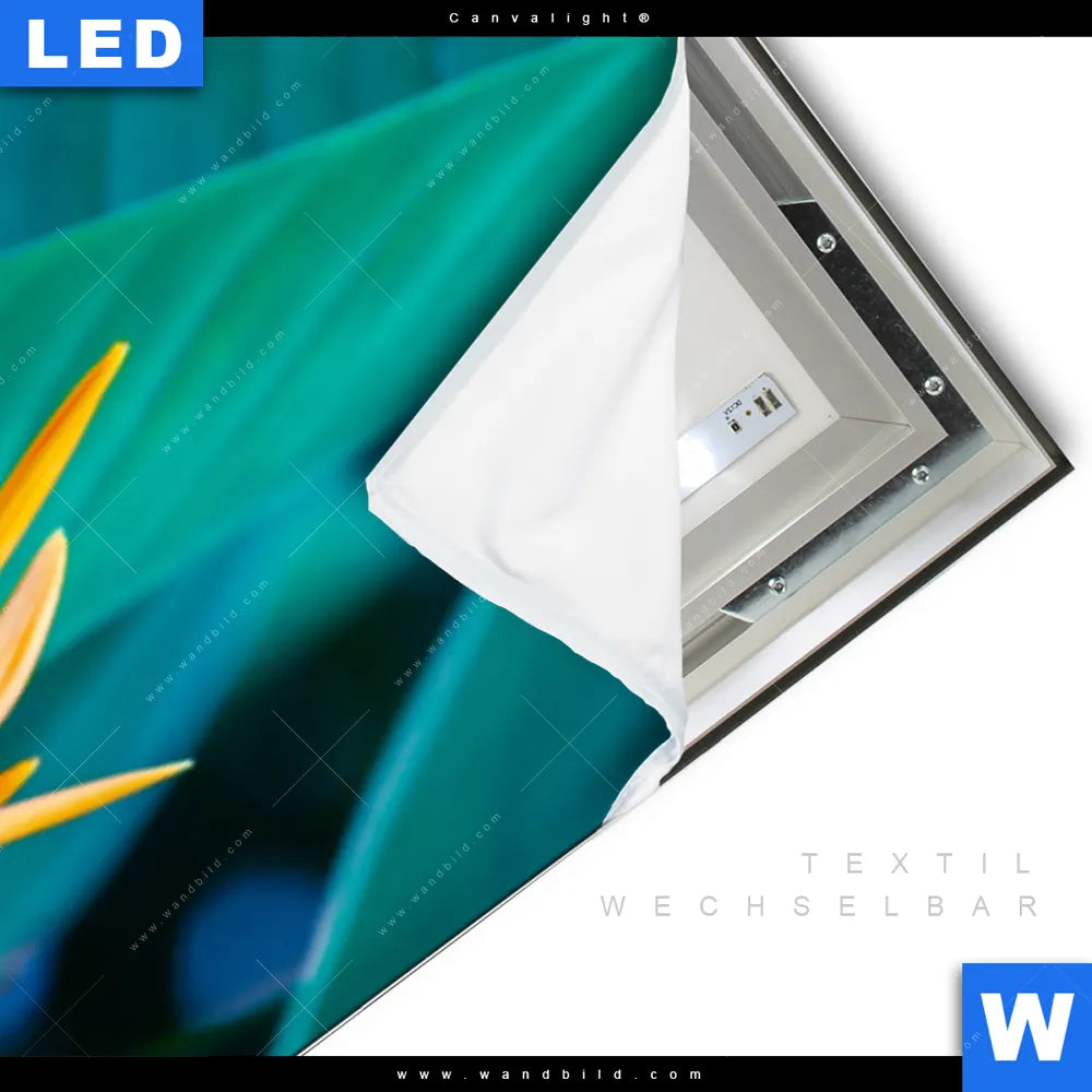 Canvalight® TEX Leuchtbild | Paradiesvogelblume | Schmal