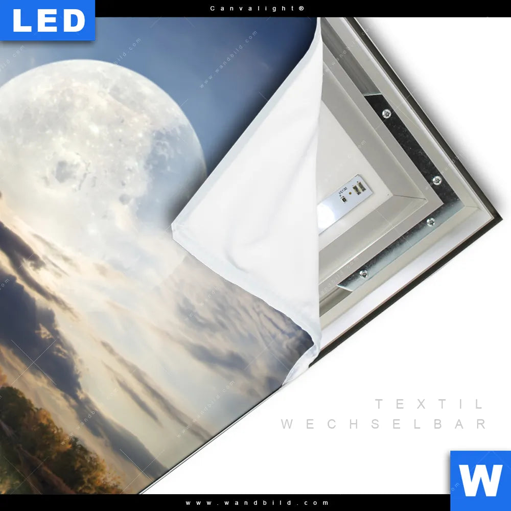 LED-Textilrahmen-Bild mit austauschbarem Landschaften Textil-Druck (Wechselbild)