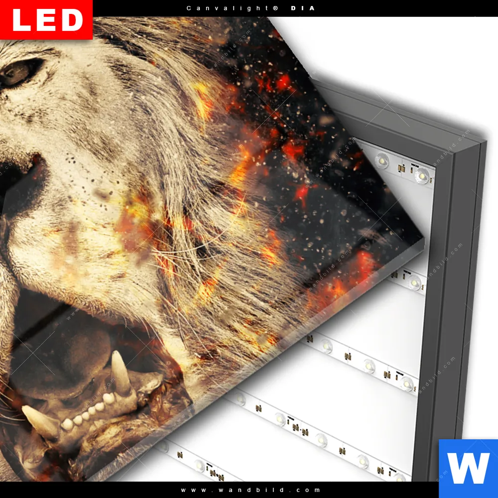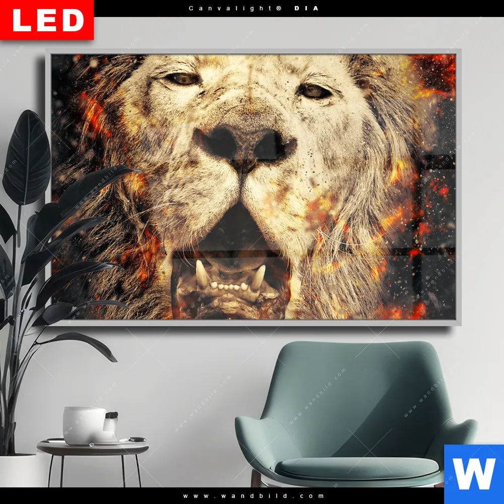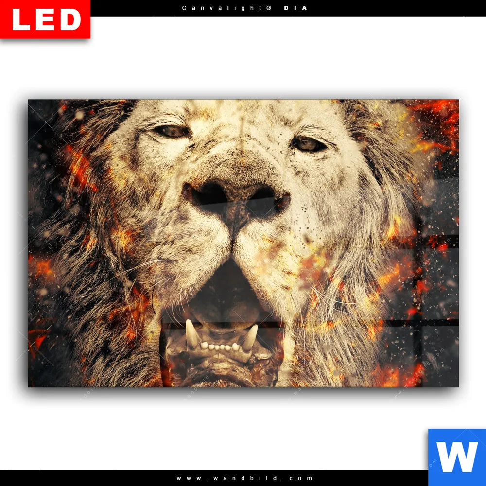 Wechselmotiv Acrylglas Canvalight® DIA | Feuer Löwe | Querformat