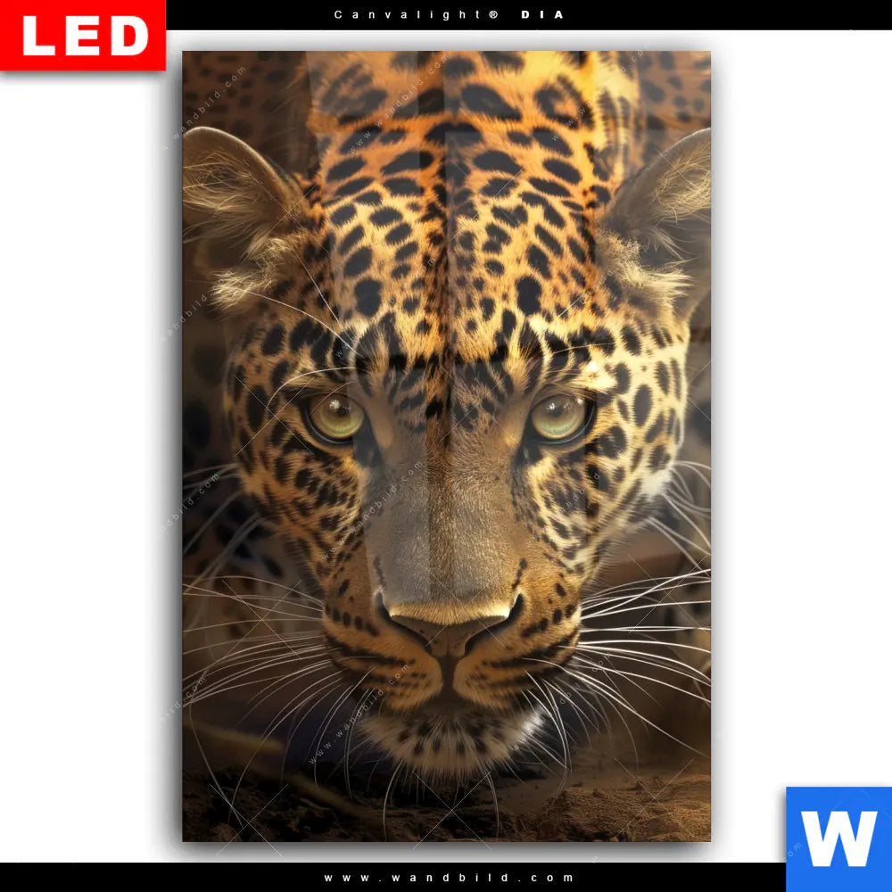 Wechselmotiv Acrylglas Canvalight® DIA | Geheimnisvoller Leopard | Hochformat
