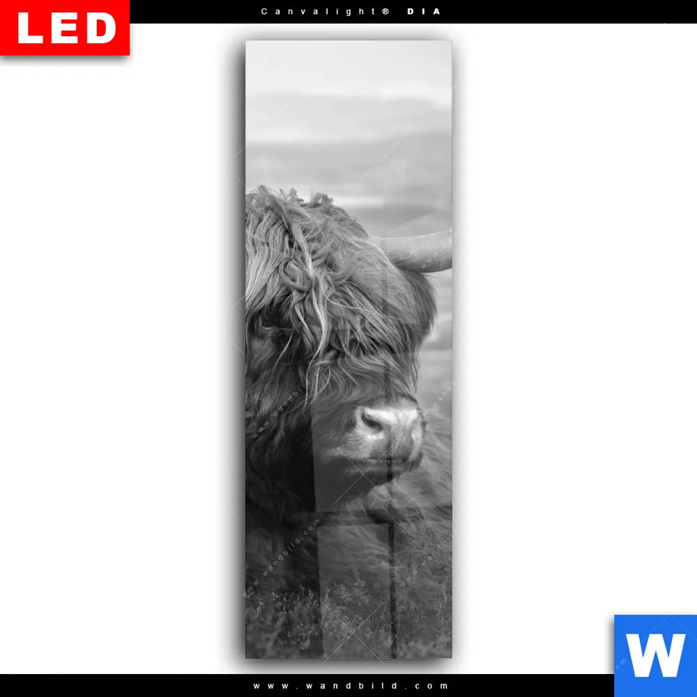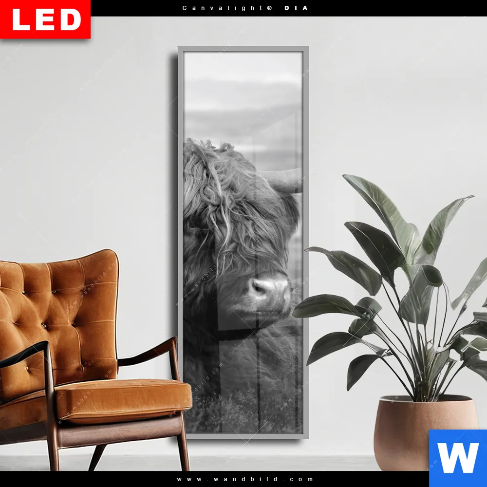 Wechselmotiv Acrylglas Canvalight® DIA | Hochland-Rind Schwarz-Weiß No. 2 | Schmal
