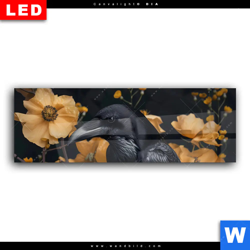 Wechselmotiv Acrylglas Canvalight® DIA | Naturbild - Rabe & Blüten | Panorama